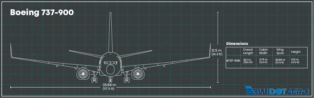 B737-900 Series : The B737-900 is the largest-fuselage member of the B737- NG family, featuring seats arranged on a single aisle permitting up to six-abreast seating in a cabin below four meters (13 ft) of width. The aircraft shares the same cockpit and utilizes common flight controls and cabin management systems as other aircraft in the B737-NG class. This consistency makes life easier for pilots and cabin crew and allows them to focus on looking after passengers. Cockpit commonality reduces training, maintenance costs and maximize parts interoperability. The Typical B737-900 seating arrangement is 178 to 220 passengers with a maximum capacity of up to 230 travelers. Future cargo versions are being explored.