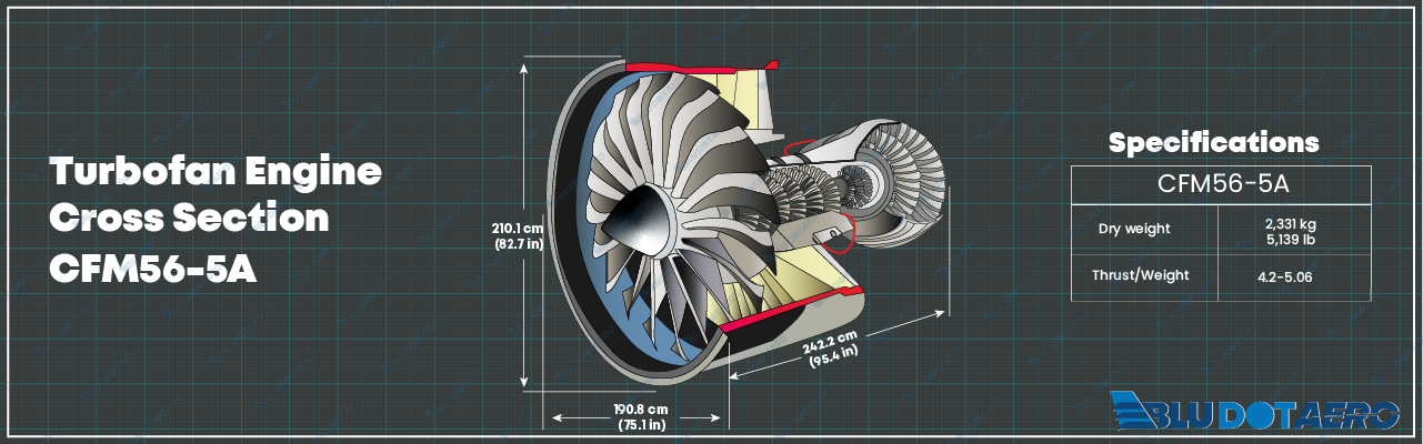 CFM56-5A Series of Engines : CFM56-5A series of high-bypass turbofan aircraft engines made by CFM International (CFMI). The CFM56-5A series is the initial CFM56-5 series, designed to power the short-to-medium range Airbus A320 family. Derived from the CFM56-2 and CFM56-3 families, the -5A series produces thrusts between 22,000 and 26,500 lbf (98 kN and 118 kN). Aerodynamic improvements such as an updated fan, low-pressure compressor, high-pressure compressor and combustor make this variant 10–11% more fuel efficient than its predecessors.