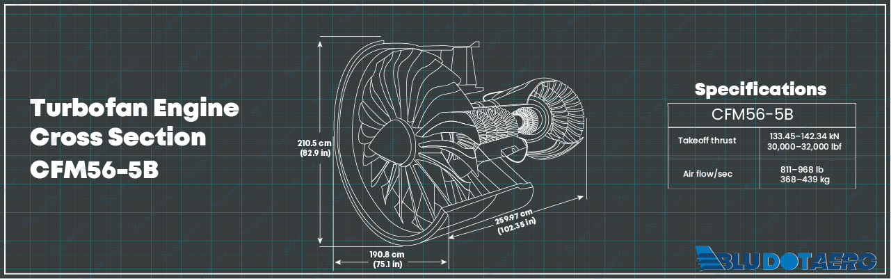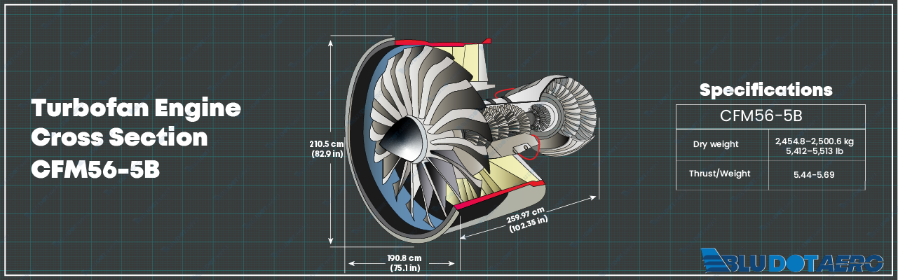 CFM56-5B Series of Engines : CFM56-5B series of high-bypass turbofan aircraft engines made by CFM International (CFMI). An improvement of the CFM56-5A series, the CFM56-5B was originally designed to power the Airbus A321. With a thrust range between 22,000 and 33,000 lbf (98 kN and 147 kN) it can power every model in the A320 family (A318/A319/A320/A321) and has superseded the CFM56-5A series. Among the changes from the CFM56-5A is the option of a double-annular combustor that reduces emissions (particularly NOx), a new fan in a longer fan case, and a new low-pressure compressor with a fourth stage (up from three in earlier variants). CFM56-5B series is the highest volume engine supplied to Airbus.